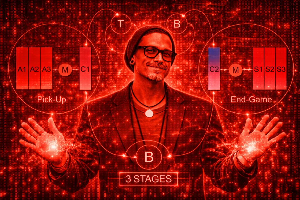Mystery’s world-renowned framework for the courtship process—from first meeting to the start of a sexual relationship. Mystery breaks down the stages and phases every courtship naturally moves through, based on the innate biological and psychological processes that govern all human attraction.